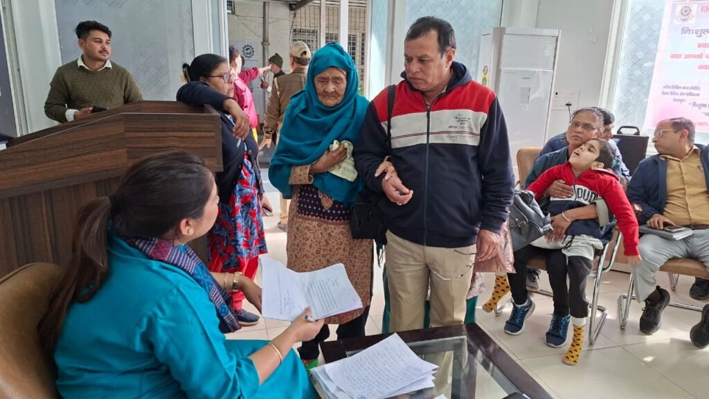 देहरादून ।जिलाधिकारी सविन बंसल के निर्देशों पर सोमवार को क्लेक्ट्रेट परिसर में मुख्य विकास अधिकारी अभिनव शाह की अध्यक्षता में जनता दरबार लगाया गया। जनता दरबार में भूमि विवाद, सीमांकन, अतिक्रमण, मार-पीट, भरण पोषण, आपदा से क्षतिपूर्ति सहायता, आर्थिक सहायता, सामाजिक सुरक्षा आदि से जुड़ी 146 समस्या/शिकायतें दर्ज हुई। मुख्य विकास अधिकारी ने मौके पर ही कई मामलों का ऑन द स्पॉट निष्पादन किया साथ ही कुछ प्रकरणों को इससे जुड़े विभागों को अग्रसारित करते हुए विधि सम्मत त्वरित कार्रवाई करने के निर्देश दिए।