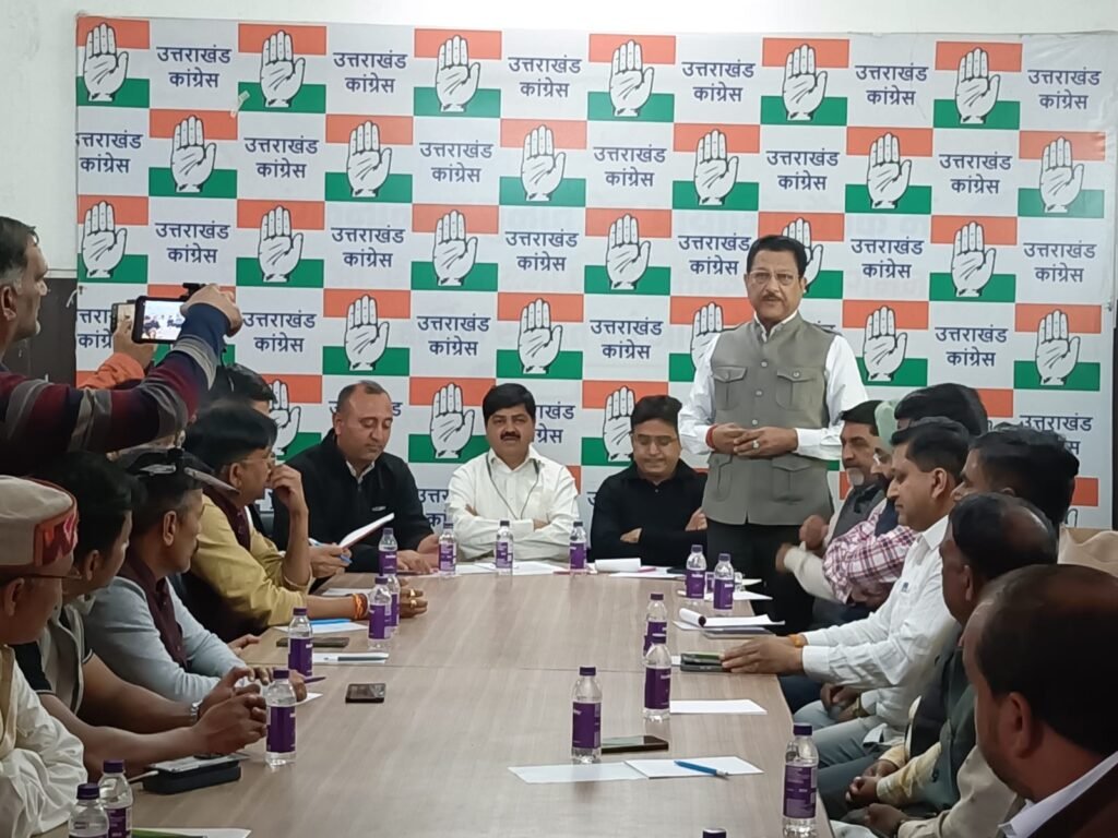 इस अवसर पर प्रदेश कांग्रेस के सह प्रभारी सुरेन्द्र शर्मा ने पार्टी के नव नियुक्त प्रदेश अध्यक्ष गणेश गोदियाल व सभी जिला महानगर के नव नियुक्त अध्यक्षों को बधाई दी। उन्होंने जिला महानगर अध्यक्षों से कहा कि जहां जहां पार्टी के संगठन को पुनर्गठित करने की आवश्यकता है उसके लिए प्रदेश कांग्रेस कमेटी को प्रस्ताव भेजें। प्रदेश कांग्रेस के दूसरे सह प्रभारी मनोज यादव ने सभी नव नियुक्त जिला महानगर अध्यक्षों से आह्वाहन किया कि आने वाले तीन महीनों में बूथ स्तर तक कमेटियां गठित कर लें और अपने अपने जिले में शत प्रतिशत ब्लॉक कांग्रेस कमेटियों का गठन कर लें।